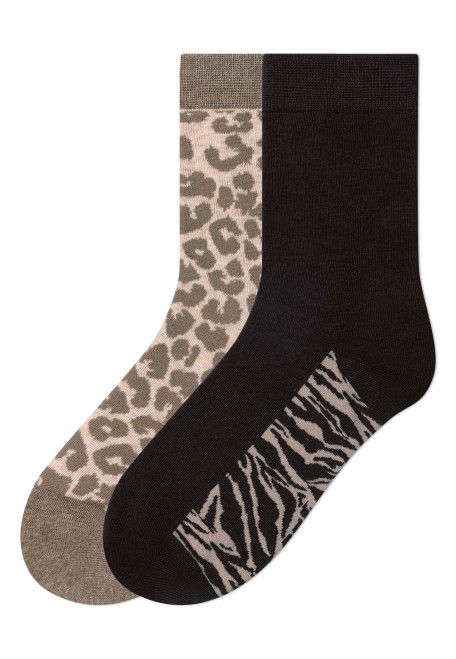 Женские носки из смесового хлопка, цвет бежевый/шоколадный, набор 2 пары (SO392)