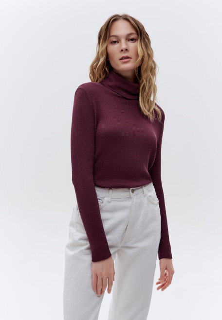 Водолазка из рельефного трикотажа, цвет бордовый (TNR207)