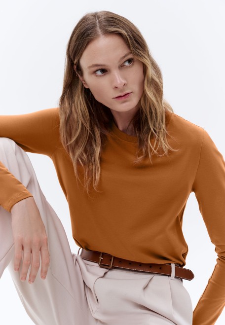 Женская футболка-лонгслив, цвет кэмел (BLS105)