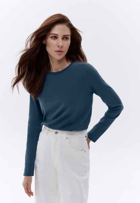 Женская футболка-лонгслив, цвет морской синий (BLS108)