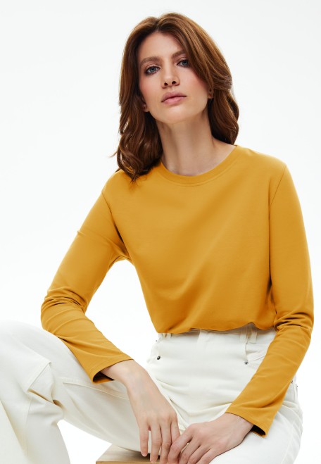 Женская футболка-лонгслив, цвет горчичный (BLS112)