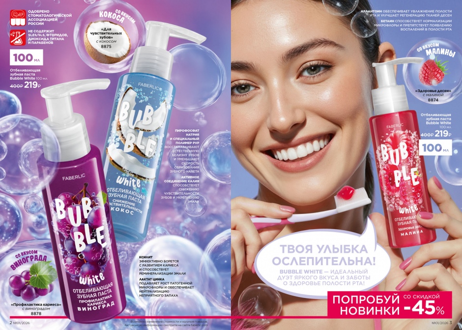 Отбеливающая зубная паста с малиной «Здоровье десен» Bubble White